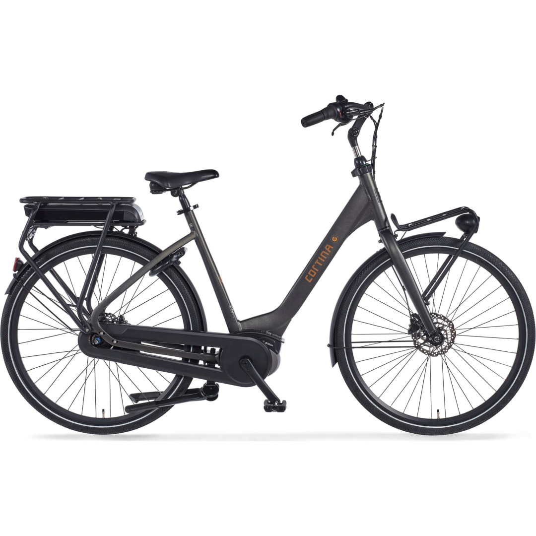 Comfort staat voorop bij de Cortina E-Common Family. De fiets is voorzien van een ergonomisch zadel en een rechtopstaande zithouding, wat zorgt voor een ontspannen rijervaring. De verende voorvork en het zadel zorgen ervoor dat oneffenheden in de weg minder voelbaar zijn, wat vooral prettig is tijdens langere ritten. Het stijlvolle ontwerp met moderne kleuren en strakke lijnen maakt deze e-bike niet alleen functioneel, maar ook een echte blikvanger.